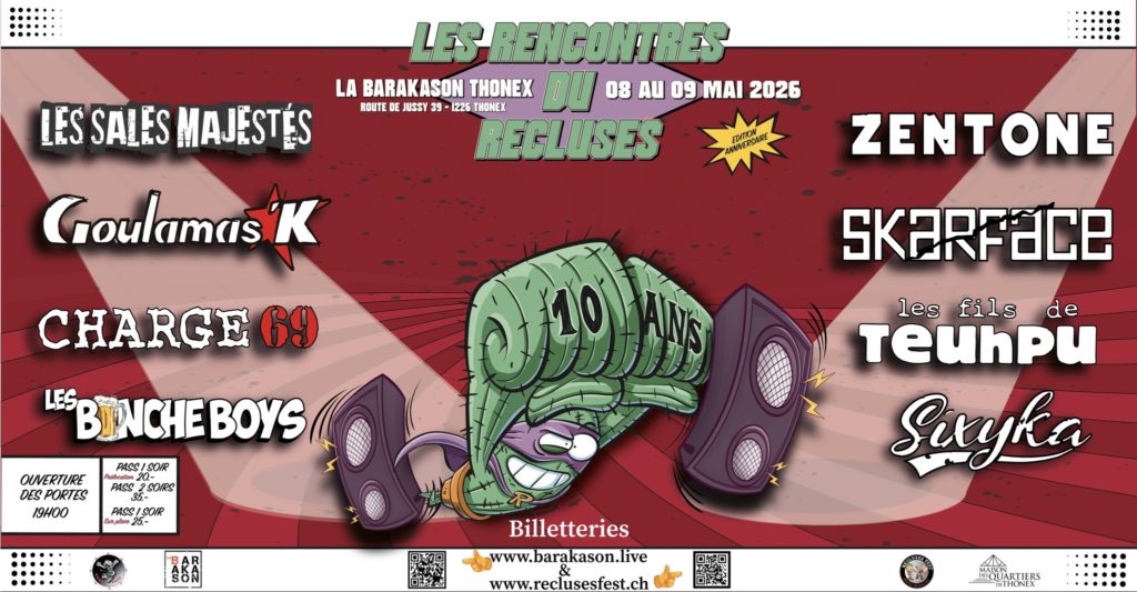 Vendredi 8 mai 2026 : Barakason- Thônex (GE) – avec Charge 69, Les Sales Majestés, Goulamas’k